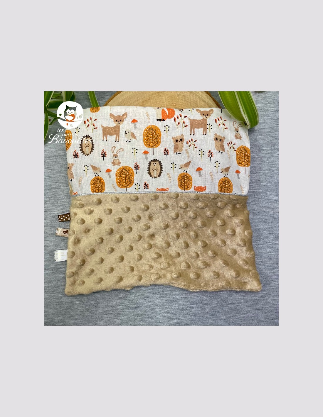 Doudou bébé carré plat tout doux fait main avec étiquette automne