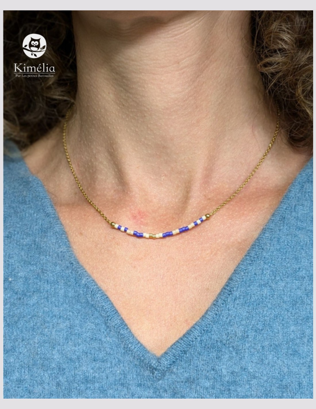 Collier fait main en acier inoxydable doré à l'or fin, orné de perles Miyuki de haute qualité.