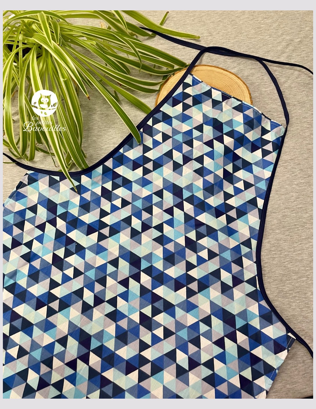 Tablier de cuisine ado et adulte fait main en France triangle bleu