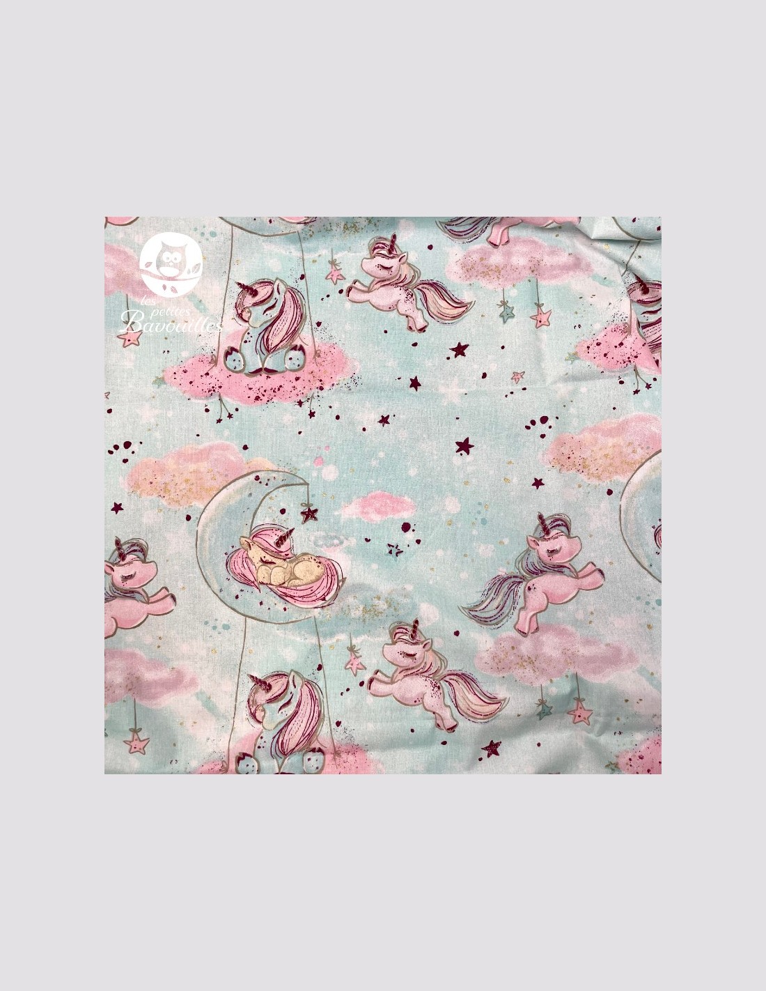 Pochette tissu fait main licorne vert d'eau
