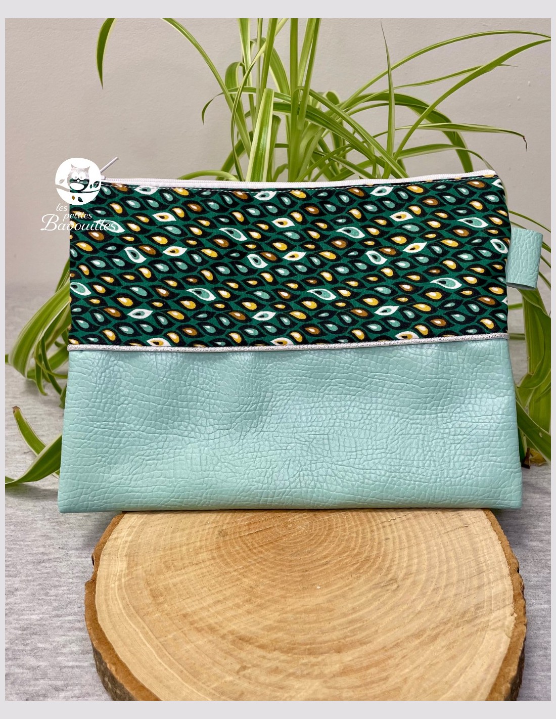 Pochette tissu fait main feuille verte