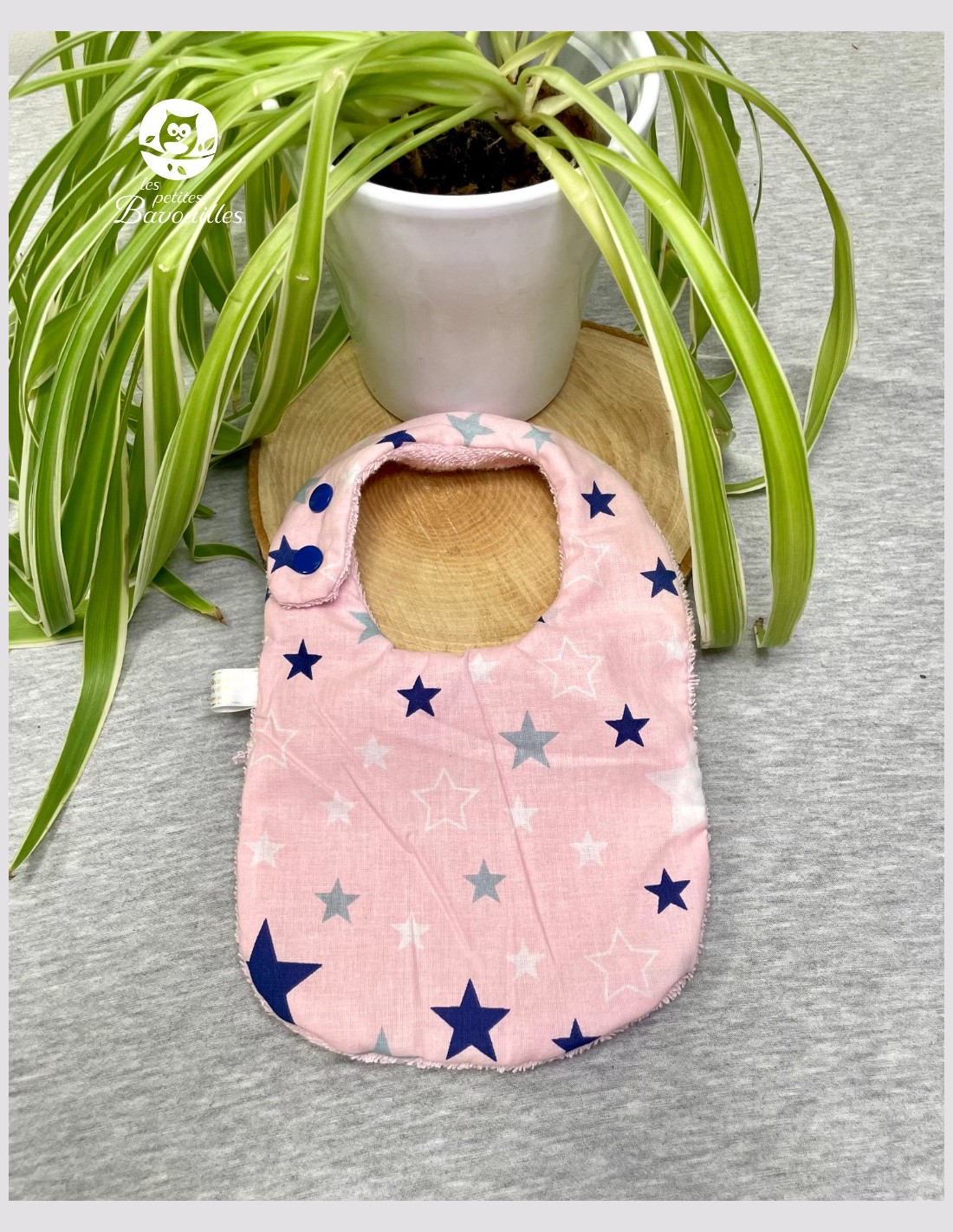 Petit bavoir naissance fait main grande étoile rose