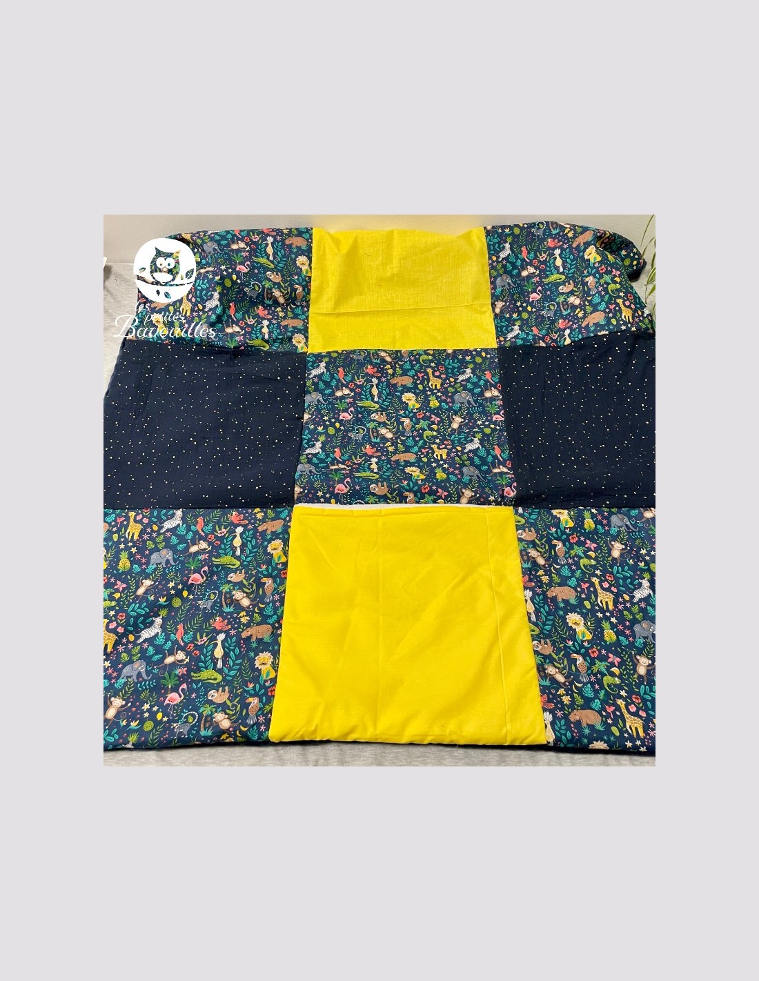 Dimension : couverture 1x1 mètre, coussin 35x35cm