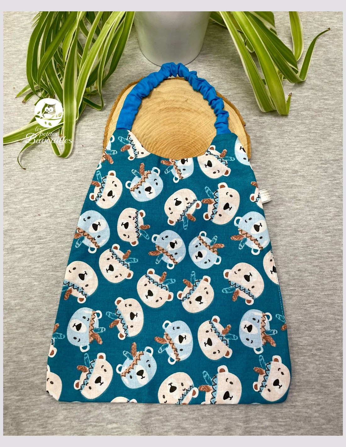 Chaque pièce est confectionnée à la main, avec soin, dans un tissu 100 % coton certifié Oeko-Tex, doux pour la peau et sans substances nocives.