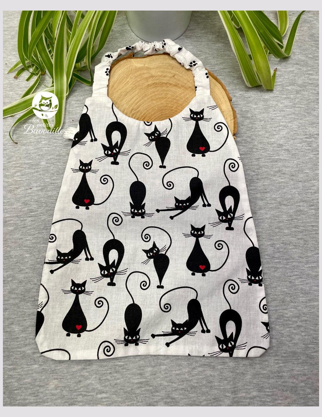 Serviette élastique fait main pour enfant black cat